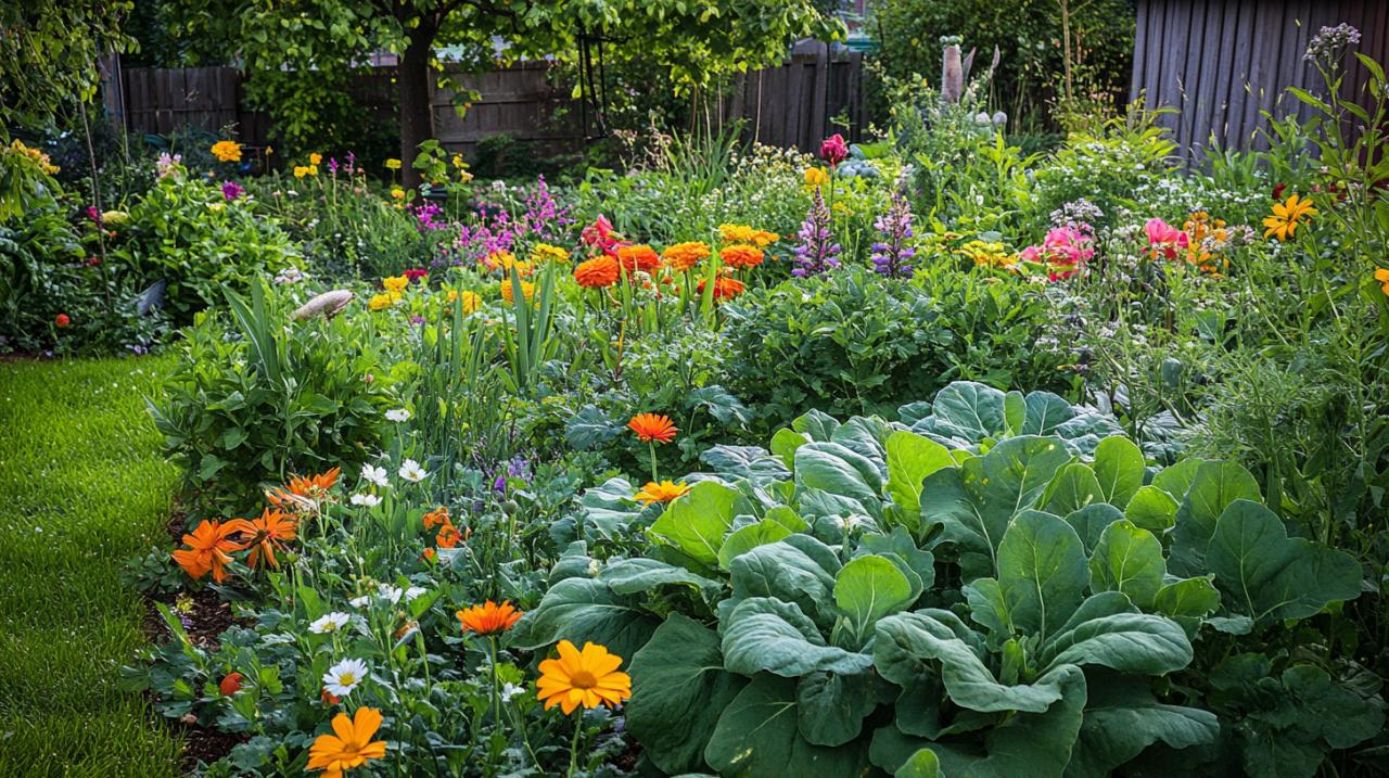 Les œillets d'Inde, cosmos, zinnias et sauges farinacées peuvent être plantés en pots au sein du potager vertical. Ces annuelles apportent une touche décorative tout en attirant les pollinisateurs indispensables à la fructification des légumes. Les vivaces en godets comme les géraniums, achillées, hémérocalles, nepeta et sauges enrichissent durablement l'écosystème du jardin. Leur floraison échelonnée maintient une présence constante d'insectes auxiliaires qui régulent naturellement les populations de ravageurs.